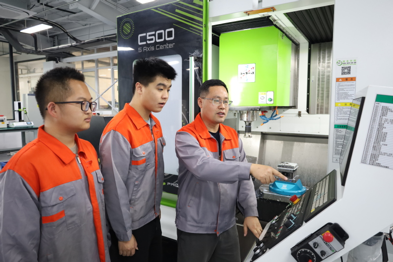 程剛深知,教學改革不僅僅是教學方法的變革,更是教育理念的更新。他和團隊深入剖析傳統(tǒng)教學模式的弊端,結(jié)合中德胡格教學改革的理念,研發(fā)出一套“項目載體+模塊課程”的梯度教學模式——一年級學手動沖壓機制作,二年級學做自動分揀機,而到了三年級,學生們則要挑戰(zhàn)智能鉆孔機的制作。“這種教學模式,讓學生在做中學、學中做、學做一體,促使他們在解決問題中得到成長,鍛煉創(chuàng)新思維和動手能力。”