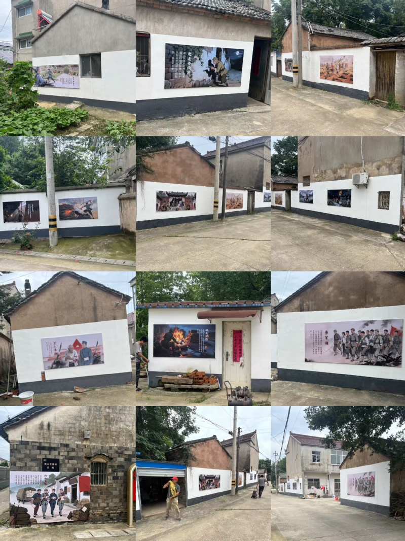 實(shí)踐團(tuán)依托學(xué)院數(shù)字設(shè)計(jì)專(zhuān)業(yè)優(yōu)勢(shì),結(jié)合當(dāng)?shù)馗锩鼩v史與鄉(xiāng)村特色,通過(guò)無(wú)人機(jī)航拍、3D建模等技術(shù)手段,對(duì)陽(yáng)山村的建筑布局、地形地貌進(jìn)行數(shù)字化分析,量身定制兼具歷史厚重感與現(xiàn)代美學(xué)的墻繪方案。團(tuán)隊(duì)精心設(shè)計(jì)的《參軍潮》《六畝塘祭》《破襲公路》等10余幅主題墻繪,生動(dòng)再現(xiàn)了茅山抗日模范村的革命故事。陽(yáng)山村老書(shū)記孔新穎表示:“實(shí)踐團(tuán)將數(shù)字技術(shù)與繪畫(huà)技法相結(jié)合,既保留傳統(tǒng)藝術(shù)的溫度,又賦予作品科技感,讓紅色歷史‘躍然墻上’。”