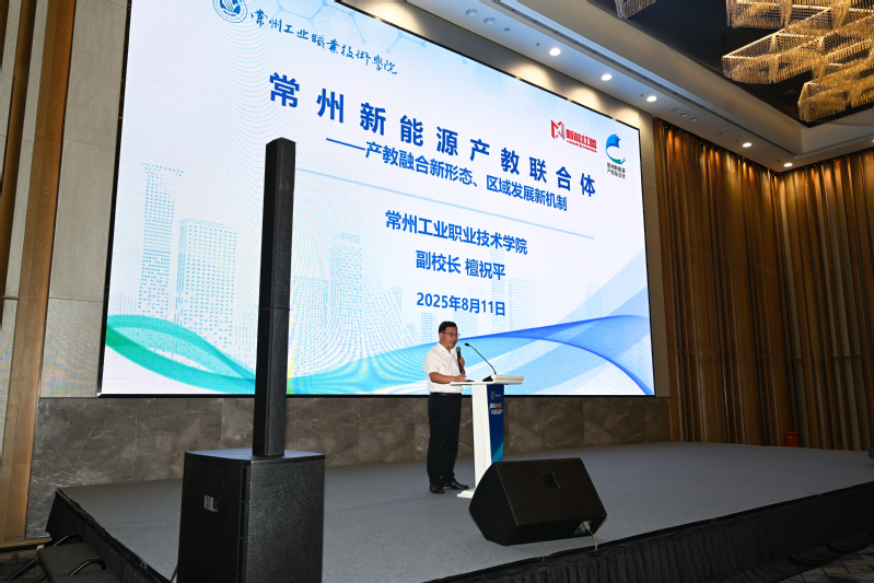 檀祝平受邀作主題發言。他詳細介紹了國家級常州新能源產教聯合體概況,從建設背景、特色做法和建設成效等方面深入探討了行業產業發展與人才培養的深度融合路徑。他表示,聯合體發展建設堅持以“聯”促“合”,夯實體制機制建設;以“合”促“融”,推進產教資源集聚;以“融”促“實”,深化協同創新發展。他強調,未來,聯合體將持續深化“產學研用”一體化,以“人才鏈”升級“產業鏈”,以“創新鏈”激活“價值鏈”,賦能筑基引企、聚鏈育才,聚力數智融合,為地方乃至兩岸新能源產業注入更強勁的發展動能。