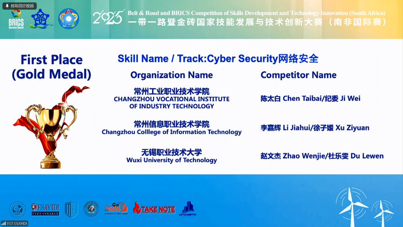 8月26日,2025金磚國家技能發展與技術創新大賽“網絡安全”賽項圓滿落幕,我校信息工程學院學生在比賽中表現卓越,一舉斬獲金獎一項、銀獎一項,為學校爭得榮譽。