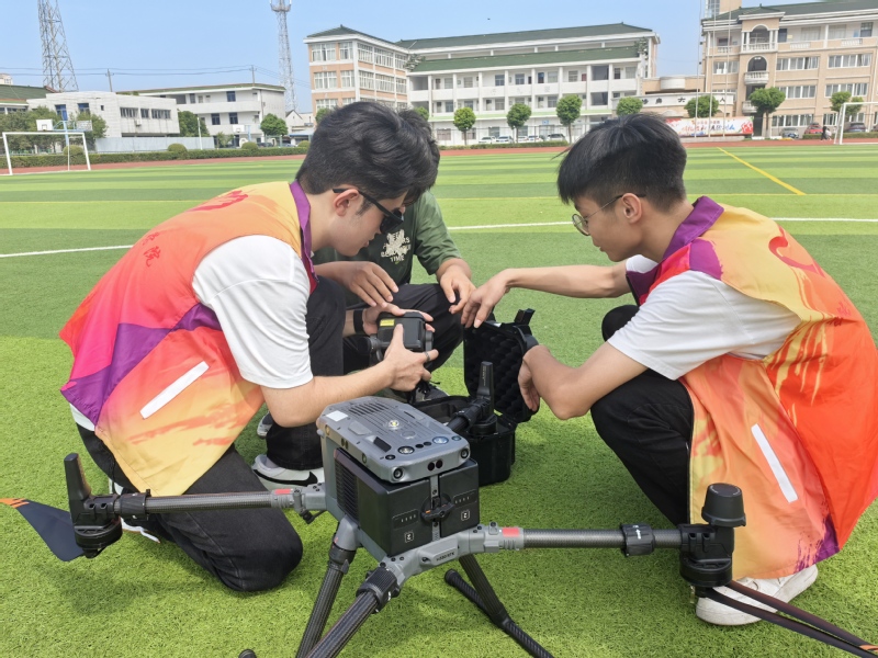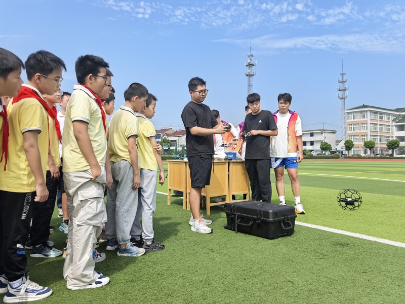 隨后的飛行演示掀起高潮。在學(xué)校操場,志愿者操控?zé)o人機(jī)完成懸停、360度盤旋、低空穿梭障礙物等動作,引得小朋友陣陣歡呼。志愿者邊操作邊講解飛行安全規(guī)范,孩子們興致勃勃,臉上滿是好奇與向往。