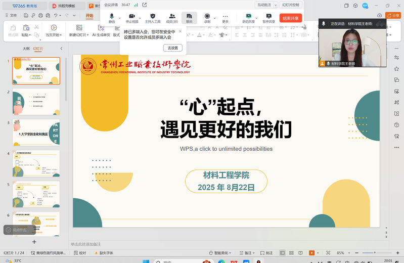 材料工程學院王姝嫻老師系統闡述了學校的辦學歷史、特色優勢等,幫助家長全面把握學校與學院發展概況,同時針對新生入學適應問題提出建議方案。她表示,學生應主動調整心態,盡快適應校園環境與學習節奏,家長需適度放手,鼓勵子女培養獨立能力,同時保持良性溝通,持續關注其心理狀態。