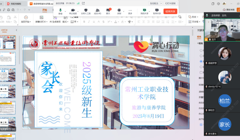各二級學院的“心”課堂活動均立足專業特點與學生成長需求,打造了“精準化、有溫度”的家校共育場景。活動結束后,不少家長表示希望能參與學校的教育過程中,比如協助組織“職業體驗日”“學長學姐分享會”等活動。一位來自江蘇南京的家長在群里寫道:“這次講座讓我明白,孩子上大學不是‘放手’而是‘換一種方式陪伴’,以后我會跟學校一起,做孩子的‘精神后盾’。”