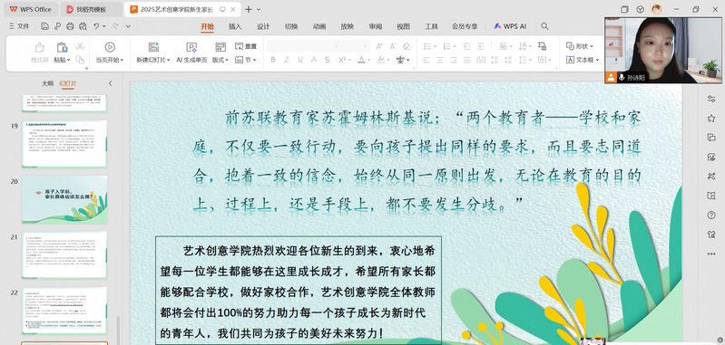 藝術創意學院孫詩陽老師聚焦學生心理健康議題,通過講解心理科普知識,指導家長協助新生完成入學心理調適,有效減輕其面對新環境的適應壓力。講座同時明確了家長在新生成長階段需關注的重點事項,并著重闡述了家校協同育人的必要性,倡導家長與學校、學院保持緊密聯系,凝聚育人合力,共同保障新生順利開啟大學生活。