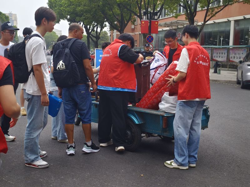 為做好這次迎新工作,大學(xué)生通訊社提前安排,統(tǒng)籌規(guī)劃。迎新當(dāng)天,20余名志愿者一大早就在學(xué)校南門、北門、西門等待著,迎接新同學(xué)的到來。他們主動幫提著大包小包的新生和家長搬運行李,耐心引導(dǎo)新生完成報到流程,帶領(lǐng)新生熟悉大學(xué)校園……他們細(xì)致的服務(wù),讓新生們初入校園就感受到了大家庭的關(guān)懷和溫暖,也為新生順利開啟大學(xué)生活提供了便利。