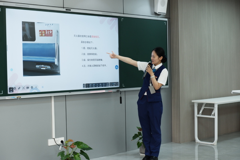 在應急設備講解環節,地鐵工作人員普及了滅火器、緊急呼叫裝置、應急門等關鍵設施的使用方法,并結合真實案例,讓學生掌握地鐵突發事件應對知識,提升學生安全防范意識和自救互救能力。