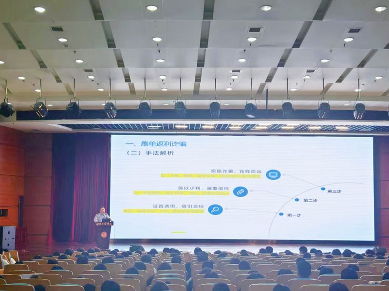 施清杰和徐于的“高校安全課堂”講座結(jié)合真實(shí)案例,深入淺出地拆解了詐騙分子的話術(shù)設(shè)計(jì)與作案流程,切實(shí)幫助學(xué)生掌握識(shí)詐、防詐、反詐的實(shí)用技能。