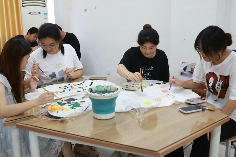 同學(xué)們用畫筆和材料充分發(fā)揮自己的藝術(shù)創(chuàng)意,在潔白的孔明燈上勾勒圖案、涂抹色彩。有人繪制了充滿奇幻色彩的星空,還有人寫下對未來的美好期許……同學(xué)們相互交流創(chuàng)意、分享技巧,互幫互助完成孔明燈的制作。藝術(shù)療愈的魅力在此刻盡顯,大家在專注于手作的過程中,暫時忘卻了學(xué)業(yè)和生活的壓力,心靈得到了放松與舒緩。