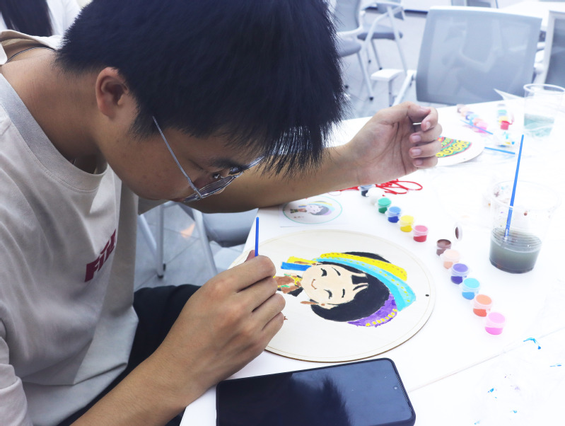 在民族風(fēng)主題掛飾制作環(huán)節(jié),同學(xué)們充分發(fā)揮創(chuàng)意,先在圓形木盤上精心繪制各族人物畫像,然后系上親手編織的中國(guó)結(jié),組裝成獨(dú)具特色的民族團(tuán)結(jié)主題掛飾,每個(gè)掛飾都展現(xiàn)一個(gè)民族的特色服飾和文化符號(hào)。“此次活動(dòng)十分有新意,不僅讓我提升了繪畫技能,更深入了解了各民族的文化特色。”參加活動(dòng)的土家族學(xué)生楊鑫宇在展示作品時(shí)說道。