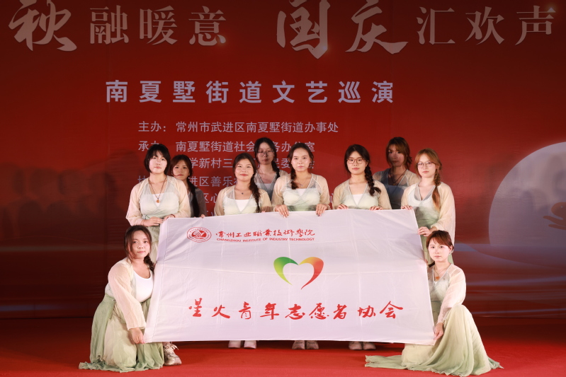 以服務(wù)傳遞愛國(guó)溫度。國(guó)慶節(jié)前夕,藝術(shù)創(chuàng)意學(xué)院組織大學(xué)生志愿者,攜手共建單位大學(xué)新村三社區(qū)共同舉辦“中秋融暖意,國(guó)慶匯歡聲”南夏墅街道文藝巡演。舞臺(tái)上,志愿者們舞姿優(yōu)美、神情專注,將青春活力與愛國(guó)情懷融入每一個(gè)動(dòng)作,贏得了社區(qū)居民的一致好評(píng)。