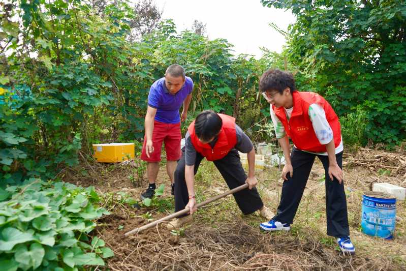 同學們走進農田,在農民伯伯和奶奶的指導下,親手體驗挖山芋、采摘黃瓜與辣椒等農事勞作。從理論到實踐,從認知到體驗,同學們在躬身耕作中真切體會到“一粥一飯,當思來之不易”的深刻含義。