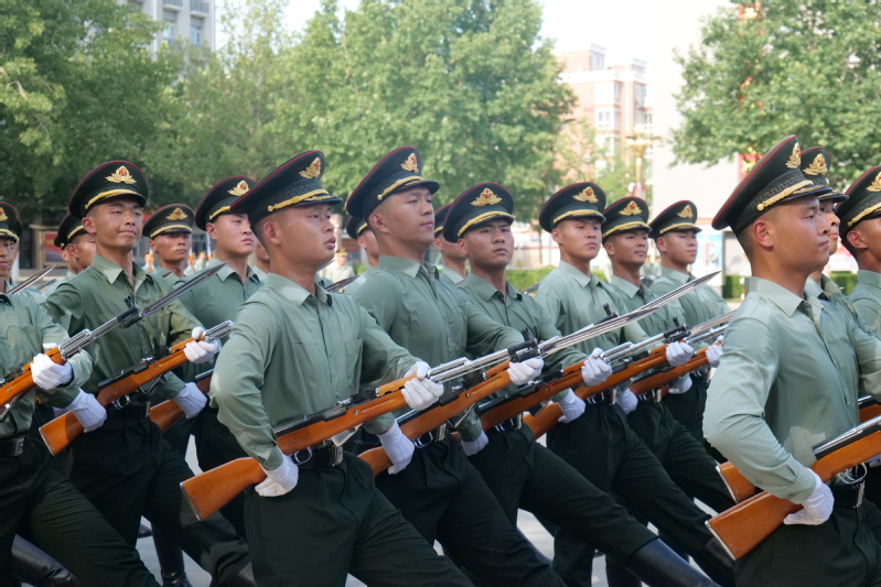 730個(gè)日夜的堅(jiān)守,四十余場任務(wù)的“零失誤”,是他交出的軍旅答卷。他曾立長安街旁,看外國政要來訪,禮炮聲響徹云霄的瞬間,才懂“儀仗兵”三字是國家形象的“移動(dòng)名片”;他曾赴人民英雄紀(jì)念碑前,捧花籃緩步前行,低頭凝視碑文的剎那,腳步比往常更沉,滿心都是對(duì)先烈的敬畏;他更難忘2024年9月1日的晨光,作為儀仗隊(duì)員將五星紅旗冉冉升起時(shí),那抹鮮紅映著朝陽,“那一刻,所有的苦都成了值得。”2024年寒冬,他作為南京大屠殺死難者國家公祭儀式的禮兵,肩負(fù)起抬花圈敬獻(xiàn)的莊嚴(yán)使命。每一次訓(xùn)練,他都要托舉著數(shù)百斤重的花籃,在凜冽寒風(fēng)中持續(xù)行走一個(gè)多小時(shí)。盡管手指被凍得通紅,但汗水仍浸透了貼身衣衫;手腕因長時(shí)間負(fù)重而腫脹不堪,每一次彎曲都伴隨著鉆心的刺痛。然而,他始終以近乎苛刻的標(biāo)準(zhǔn)要求自己,因?yàn)樵谒闹校@不僅是一份個(gè)人榮譽(yù),更是對(duì)先烈們?yōu)樽鎳鴱?qiáng)盛拋頭顱、灑熱血的至高致敬——這份沉甸甸的責(zé)任,早已化作他血脈中流淌的信仰。