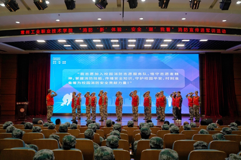 常州市消防救援支隊、武進區消防救援大隊,我校保衛處、學工處、相關二級學院負責人及2025級師生代表共5000余人參加此次活動。(審核:李維、李穎、楊曌)