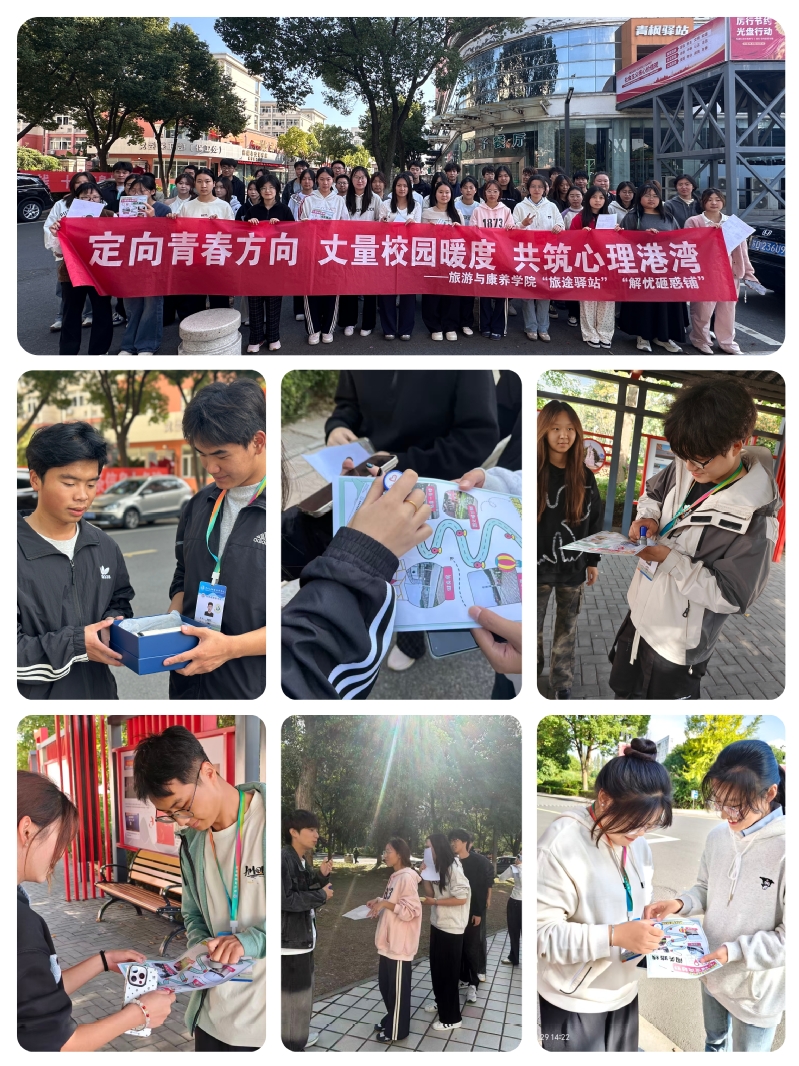 10月24-29日,旅游與康養學院圍繞“護航成長”主題,依托“一站式”學生社區,整合“旅途驛站”與精品項目“解憂砸惑鋪”等平臺資源,組織開展了一系列形式多樣、內容豐富的心理健康活動,構建“教育+活動+互助”的多維心理育人體系,有效促進學生心理素質提升。