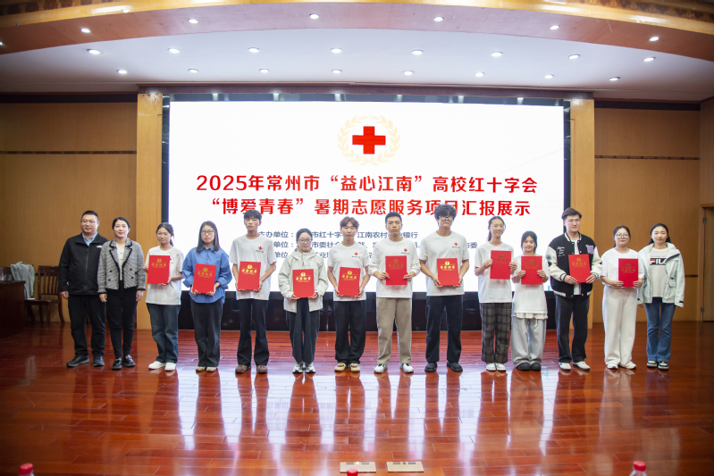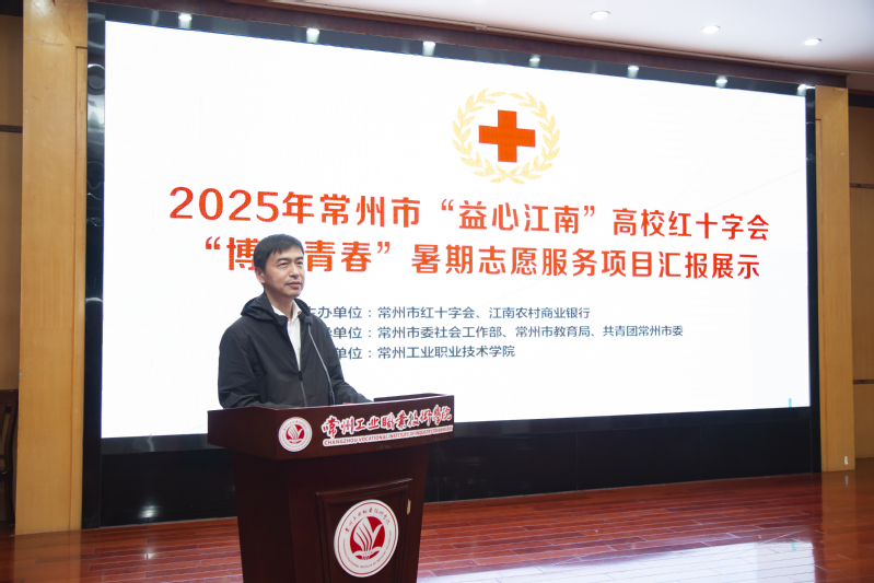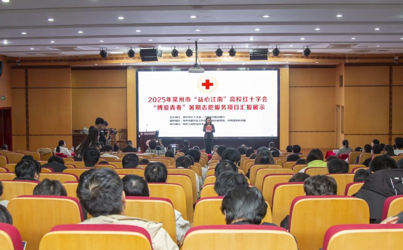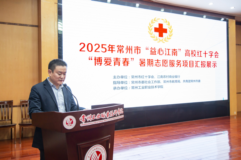 11月6日,2025年常州市“益心江南”高校紅十字會(huì)“博愛青春”暑期志愿服務(wù)項(xiàng)目總結(jié)展示活動(dòng)在我校舉行。常州市紅十字會(huì)黨組書記、常務(wù)副會(huì)長(zhǎng)戴亞東,我校黨委副書記吳麗云,江南農(nóng)村商業(yè)銀行工會(huì)副主席殷錫峰,常州市紅十字會(huì)黨組成員、副會(huì)長(zhǎng)鄭躍進(jìn),市委社工部、市教育局、團(tuán)市委、市紅會(huì)等相關(guān)處室負(fù)責(zé)人,以及各高校紅十字會(huì)項(xiàng)目負(fù)責(zé)老師、大學(xué)生志愿者、學(xué)生代表共200余人參加活動(dòng)。