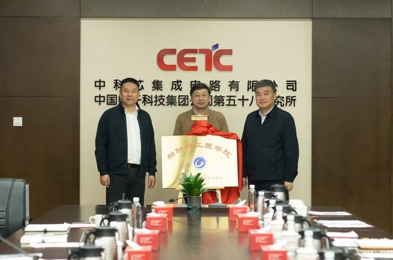 黨委書記席海濤表示,學(xué)校將以新時代工匠學(xué)院為平臺,不斷整合教師、校友資源,與中科芯集成電路有限公司共建大師工作室、工程技術(shù)研發(fā)中心、混編教科研團隊,推進學(xué)徒制人才培養(yǎng),在進一步打造江蘇省高素質(zhì)產(chǎn)業(yè)工人隊伍上發(fā)揮重要作用。