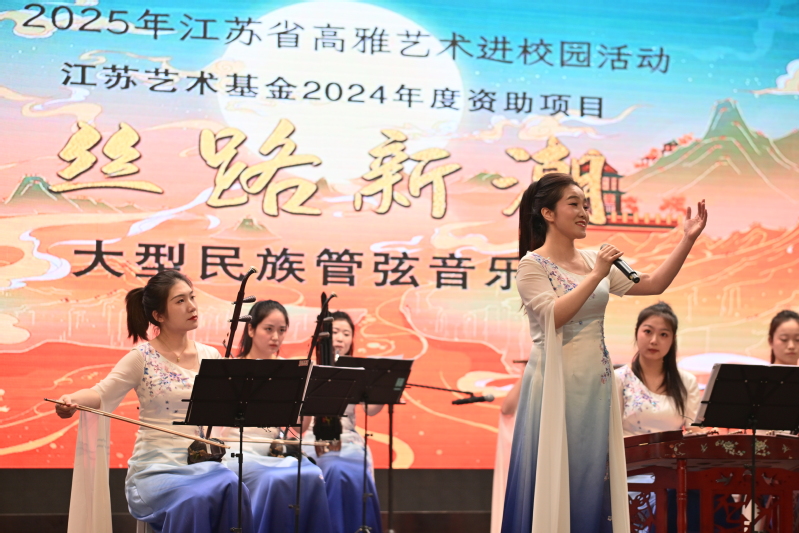 11月12日,江蘇省高雅藝術(shù)進(jìn)校園項(xiàng)目——江蘇女子民族樂(lè)團(tuán)“絲路新潮”大型民族管弦音樂(lè)會(huì)走進(jìn)我校。學(xué)校特別組織了“一帶一路”合作國(guó)家的海外學(xué)生與本校師生共同觀演,現(xiàn)場(chǎng)逾千名師生沉浸于民族音樂(lè)的魅力之中,共同感受絲路文化的時(shí)代新聲。