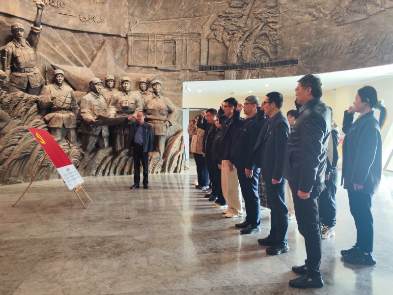 在紀念館廣場的革命先烈雕塑前,面對鮮紅的黨旗,全體黨員莊嚴列隊,由機關黨總支第三黨支部書記郝福錦領誓,一同重溫入黨誓詞。“我志愿加入中國共產黨……”鏗鏘有力的誓言在空中回蕩,表達了同志們?yōu)辄h的事業(yè)奮斗終身的堅定決心。
