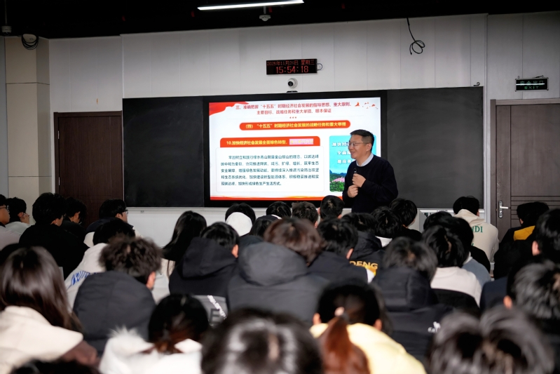 王明志從“十五五”規劃建議的戰略定位、核心內容和青年使命三個方面,系統解讀了黨的二十屆四中全會精神。他重點講解了“六個堅持”重要原則和“建設現代化產業體系”“加快實現高水平科技自立自強”等核心任務,引導同學們深刻理解“十五五”規劃對青年成長的時代意義。