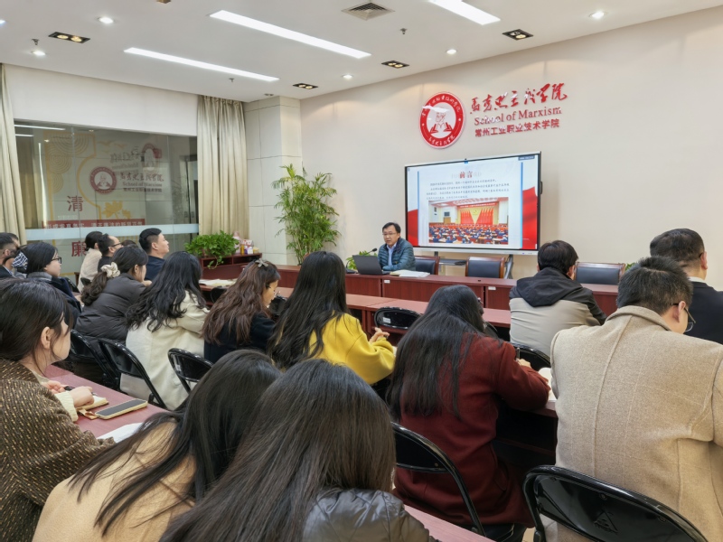 11月26日,馬克思主義學(xué)院黨總支舉行學(xué)習(xí)貫徹黨的二十屆四中全會(huì)精神宣講報(bào)告會(huì)。學(xué)院黨總支副書(shū)記李飛以“深學(xué)篤行黨的二十屆四中全會(huì)精神 在推進(jìn)馬克思主義學(xué)院高質(zhì)量發(fā)展中展現(xiàn)新作為”為題,為全院教師作了一場(chǎng)內(nèi)容豐富、思想深刻的專題宣講。