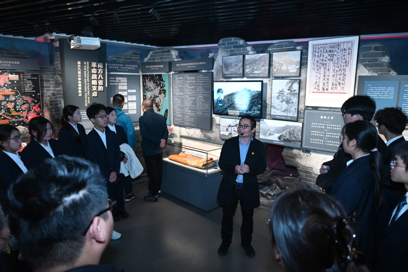 在紀(jì)念館講解員的引導(dǎo)下,師生們依次參觀了指揮部司令部舊址、史料展覽館、碑廊等。一件件飽經(jīng)戰(zhàn)火的歷史文物,一幅幅珍貴的歷史圖片,一段段翔實(shí)的文字資料,生動再現(xiàn)了以粟裕、譚震林等為代表的新四軍將士在江南地區(qū)艱苦卓絕的抗戰(zhàn)歷程和“威震江南,功在民族”的鐵軍風(fēng)采。通過沉浸式參觀學(xué)習(xí),大家深刻體會到新四軍將士在極端困難條件下,緊緊依靠人民群眾,不畏強(qiáng)敵、浴血奮戰(zhàn)的革命英雄主義精神和堅定的共產(chǎn)主義信仰。