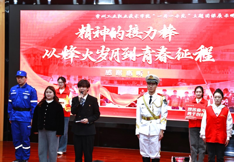 隨后,陸恩和老爺爺寄語青年要珍惜當下和平生活,牢記先輩囑托,將個人理想融入國家發展大局,以青春之我守護家國之安。現場還通過情景演繹的形式,再現了學院學子的青春擔當:有人奔赴新疆庫爾勒投身西部計劃,在基層一線書寫奉獻故事;有人投身國防事業,在艦艇之上守護萬里海疆;有人勇闖應急救援一線,與死神賽跑守護生命安全,生動展現了當代青年傳承精神、勇擔使命的鮮活模樣。