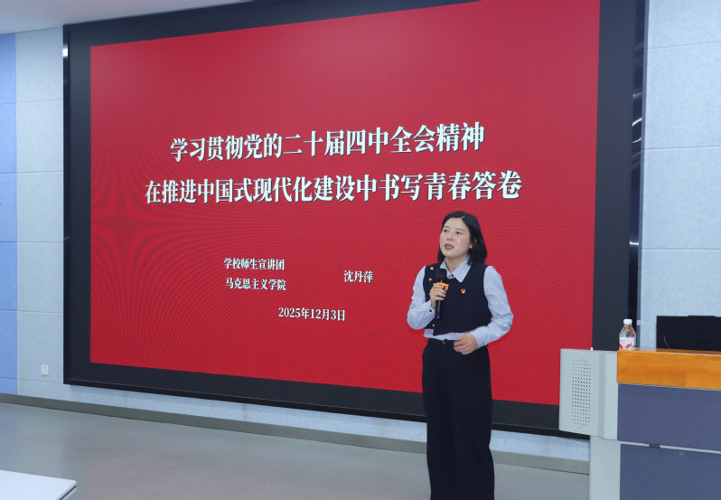 12月3日,材料工程學(xué)院邀請(qǐng)馬克思主義學(xué)院教師沈丹萍,為學(xué)院青年學(xué)子開(kāi)展了一場(chǎng)主題鮮明、內(nèi)容豐富的黨的二十屆四中全會(huì)精神宣講會(huì)。
