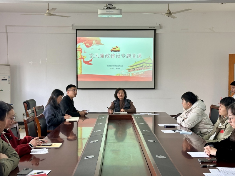 12月11日,智能控制學院黨總支組織開展黨風廉政教育專題黨課。黨課由學院黨總支書記麻麗娟主講,學院全體黨員教師參加學習。