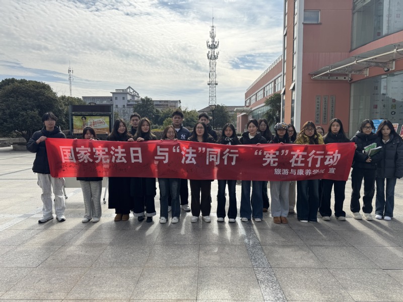 12月4日,旅游與康養學院法治宣講團舉辦“憲法日橫幅簽字”主題活動,以莊重儀式感傳遞對憲法的尊崇與信仰。