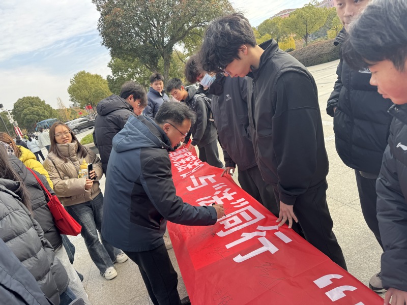 活動現場,部分老師和學生手持簽字筆,有序在長約5米的主題橫幅上鄭重簽下自己的名字,每一個簽名都代表著一份承諾、一份責任。馬克思主義學院院長李飛在簽字后表示:“這樣的活動很有意義,簽字的過程不僅是一種儀式,更讓我真切感受到憲法的嚴肅性,以后會多學習憲法知識,用法律保護自己的合法權益?!睂W生代表小李說道:“通過今天的活動,我明白了憲法不僅是書本上的條文,更是保護我們成長的‘護身符’,今后會爭做憲法的忠實崇尚者和自覺遵守者。”法治宣講團成員還在活動現場通過法治知識問答、憲法條文誦讀等互動形式,讓同學們在輕松愉悅的氛圍中學習憲法知識,增強法治意識。