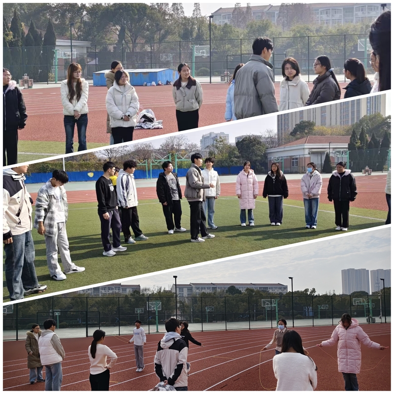 實踐環節在操場展開,同學們依次體驗了三個緊扣主題的活動。“抓鴨子”游戲作為“破冰”起點,迅速營造出輕松活潑的氛圍,有效拉近了彼此距離;隨后的30秒跳繩計時賽,則是“礪己”環節的集中體現,同學們在短暫而專注的挑戰中,體驗著突破自我、堅持到底的成就感。最后的“共行”階段——“兩人三足”團隊競速,則深刻考驗了信任、溝通與協作能力,將活動氣氛推向高潮。整個過程中,同學們全情投入,展現出良好的精神風貌。