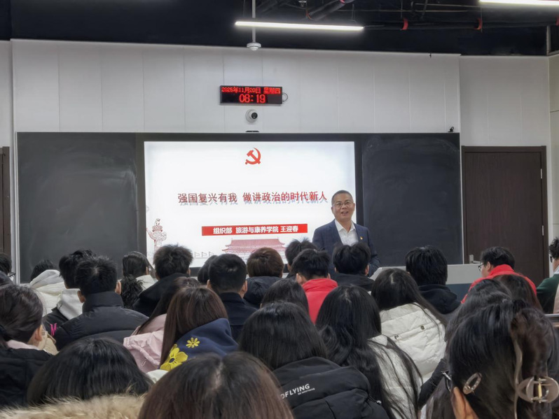 12月17日,黨委副書記、校長王志華深入2024級旅游專業(yè)課堂,以“學(xué)習(xí)黨的二十屆四中全會精神”為題,為同學(xué)們講授了一堂主題鮮明、內(nèi)涵深刻的專題思政課。王志華從黨的二十屆四中全會的歷史方位與時(shí)代意義切入,深刻闡釋了“十五五”時(shí)期在全面建設(shè)社會主義現(xiàn)代化國家進(jìn)程中的關(guān)鍵意義。他系統(tǒng)解讀了規(guī)劃的戰(zhàn)略背景、核心原則與實(shí)施路徑,通過辨析“計(jì)劃”與“規(guī)劃”的時(shí)代內(nèi)涵,引導(dǎo)學(xué)生領(lǐng)悟黨和國家治國理政的系統(tǒng)思維與戰(zhàn)略主動(dòng)。他鼓勵(lì)學(xué)生立足專業(yè)、胸懷大局,深刻認(rèn)識中國式現(xiàn)代化的宏偉藍(lán)圖與實(shí)踐路徑,自覺將個(gè)人學(xué)業(yè)與職業(yè)規(guī)劃融入國家發(fā)展浪潮,在以中國式現(xiàn)代化全面推進(jìn)中華民族偉大復(fù)興的征程中,找準(zhǔn)方位、擔(dān)當(dāng)使命、實(shí)現(xiàn)價(jià)值。