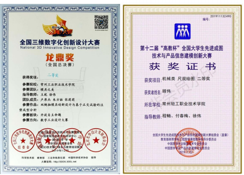 專業學生在全國職業院校技能大賽、“挑戰杯”全國大學生課外學術科技作品競賽、中國“互聯網+”大學生創新創業大賽、全國三維數字化創新設計大賽、全國大學生先進成圖技術與產品信息建模創新大賽等各類省級以上賽事榮獲大獎十余項。